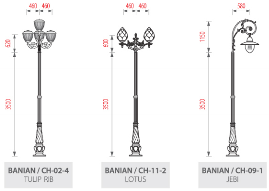 - Đế cột: Gang đúc