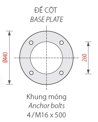 - Cột được lắp dựng trên khung móng M16.