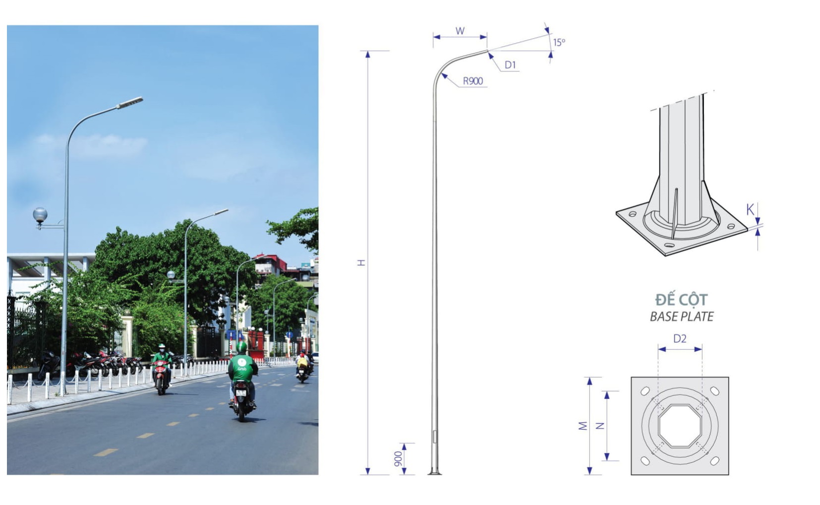 - Mạ nhúng kẽm nóng, phù hợp tiêu chuẩn ASTM A123. Ngoài ra, cột có thể sơn sau mạ.